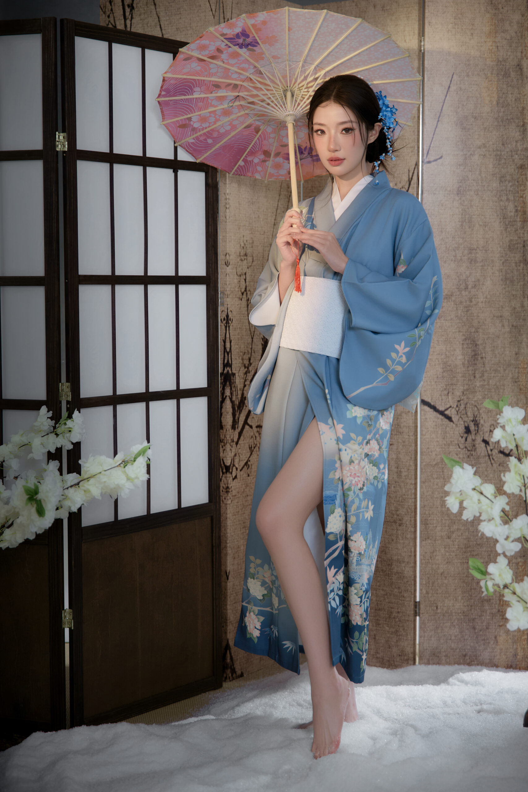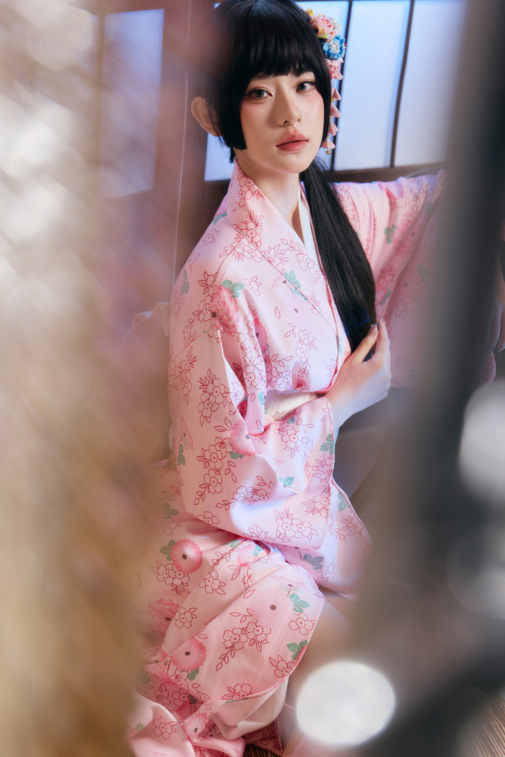 拍摄时有点放不开,觉得自己不像日本女生那样温婉。摄影师一直鼓励我做自己,让我尝试一些俏皮的动作,比如躲在扇子后面偷笑。结果出来的效果意外的好,既有和服的古典美,又有我自己的活泼性格。
